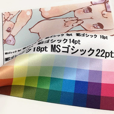 生地の種類により印刷の発色が若干変わりますので仕上がりが気になる場合はサンプル制作をおすすめいたします。