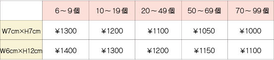 ・載っていない数量やオーダーサイズはお問い合わせください。